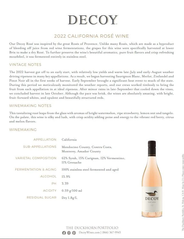 Bartenders and Servers should be familiar with the tasting notes for this wine see fact sheets below.