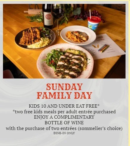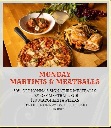 Nonna’s Mailer for Glass of Wine Promotion no expiration date on this