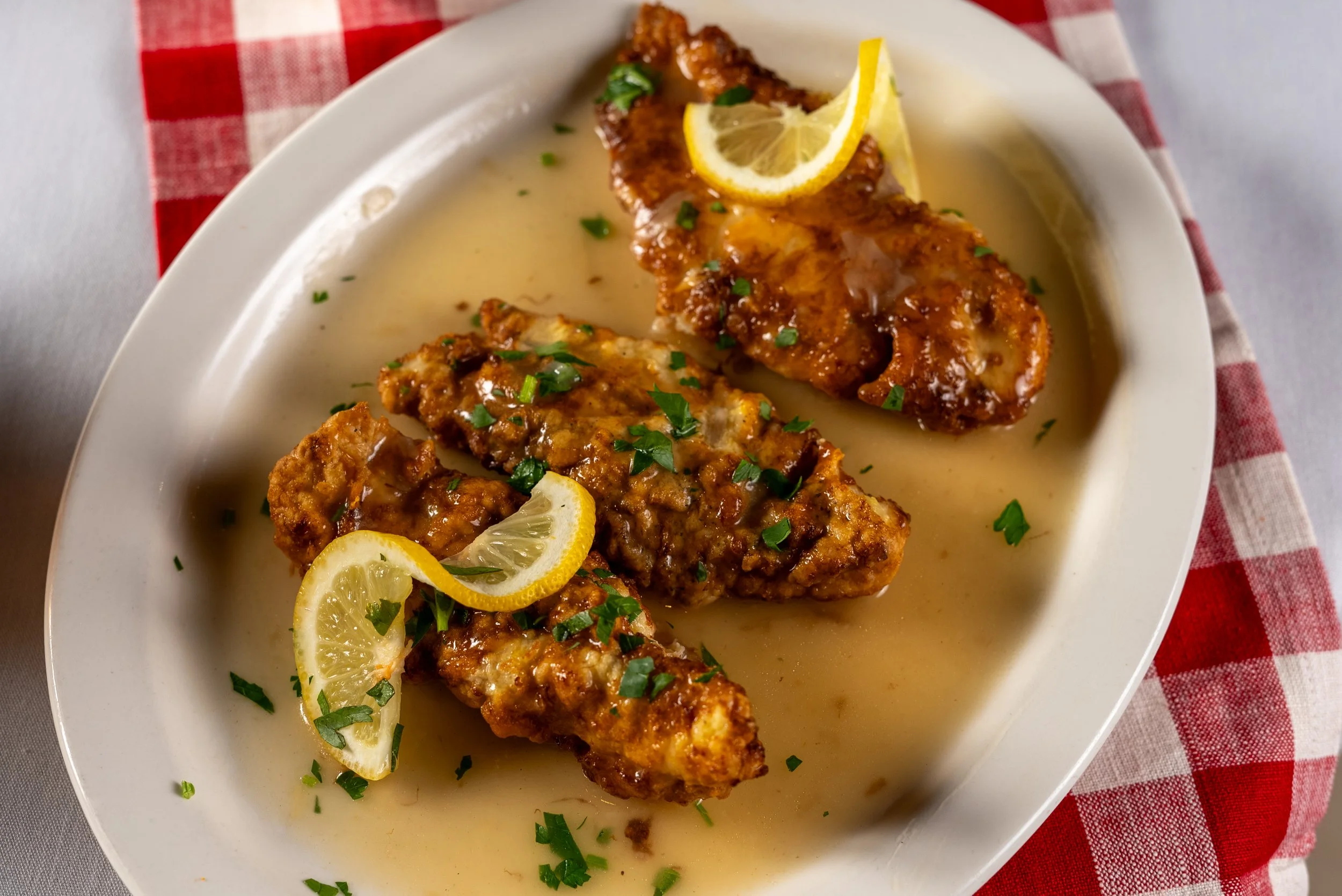 Description: egg-battered, sautéed with lemon-butter wine sauce