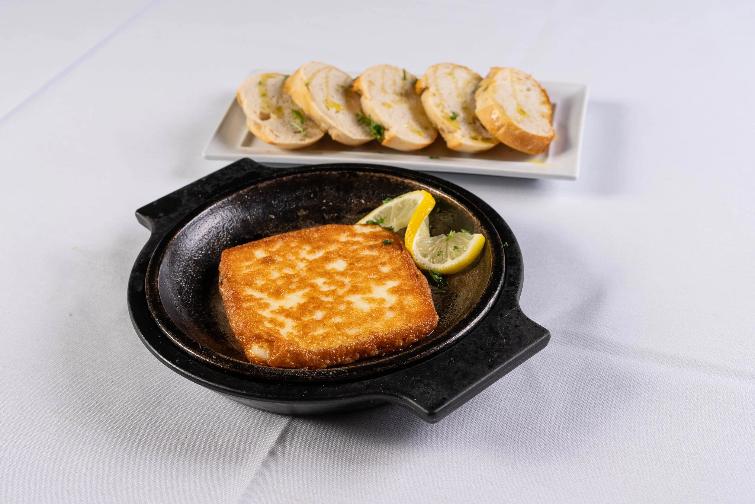 Description: Baked shrimp in our special house made tomato-garlic sauce with crumbled feta.