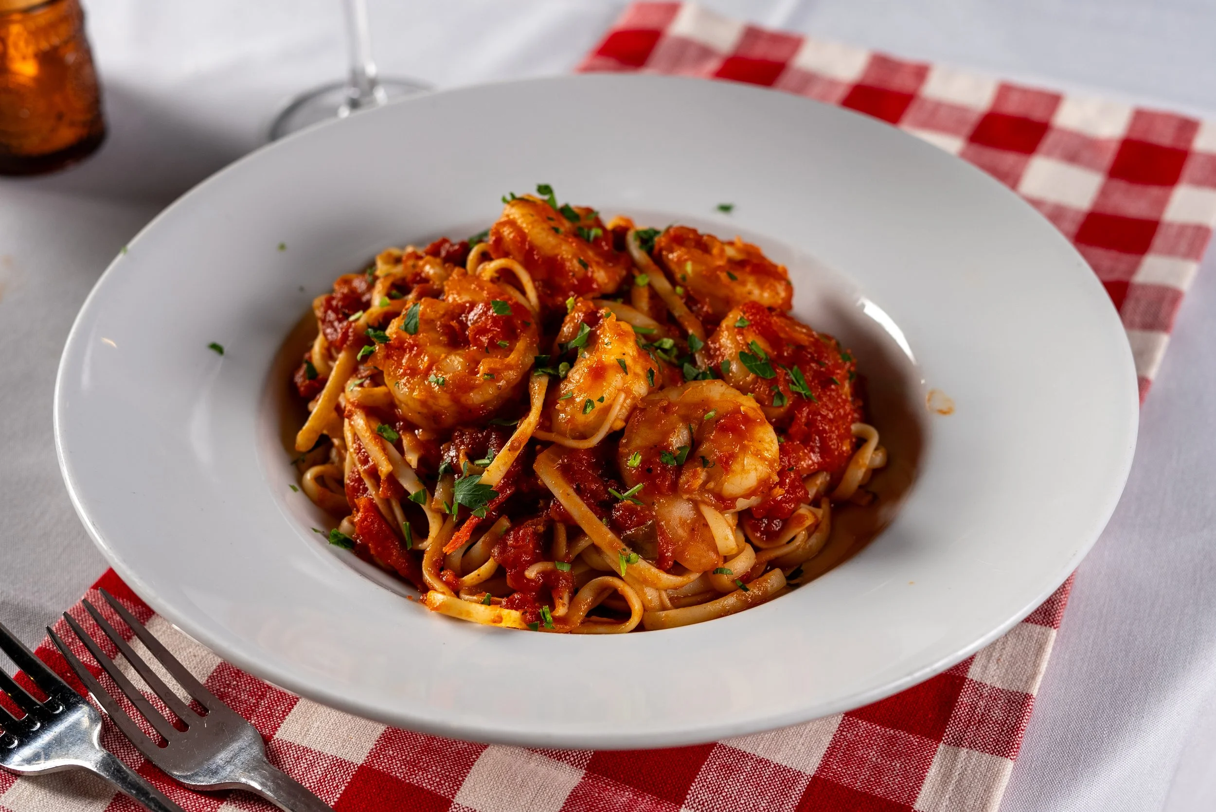 Description: Combination of shrimp, clams, mussels and calamari, prepared in a Fra Diavolo sauce, served over linguine.