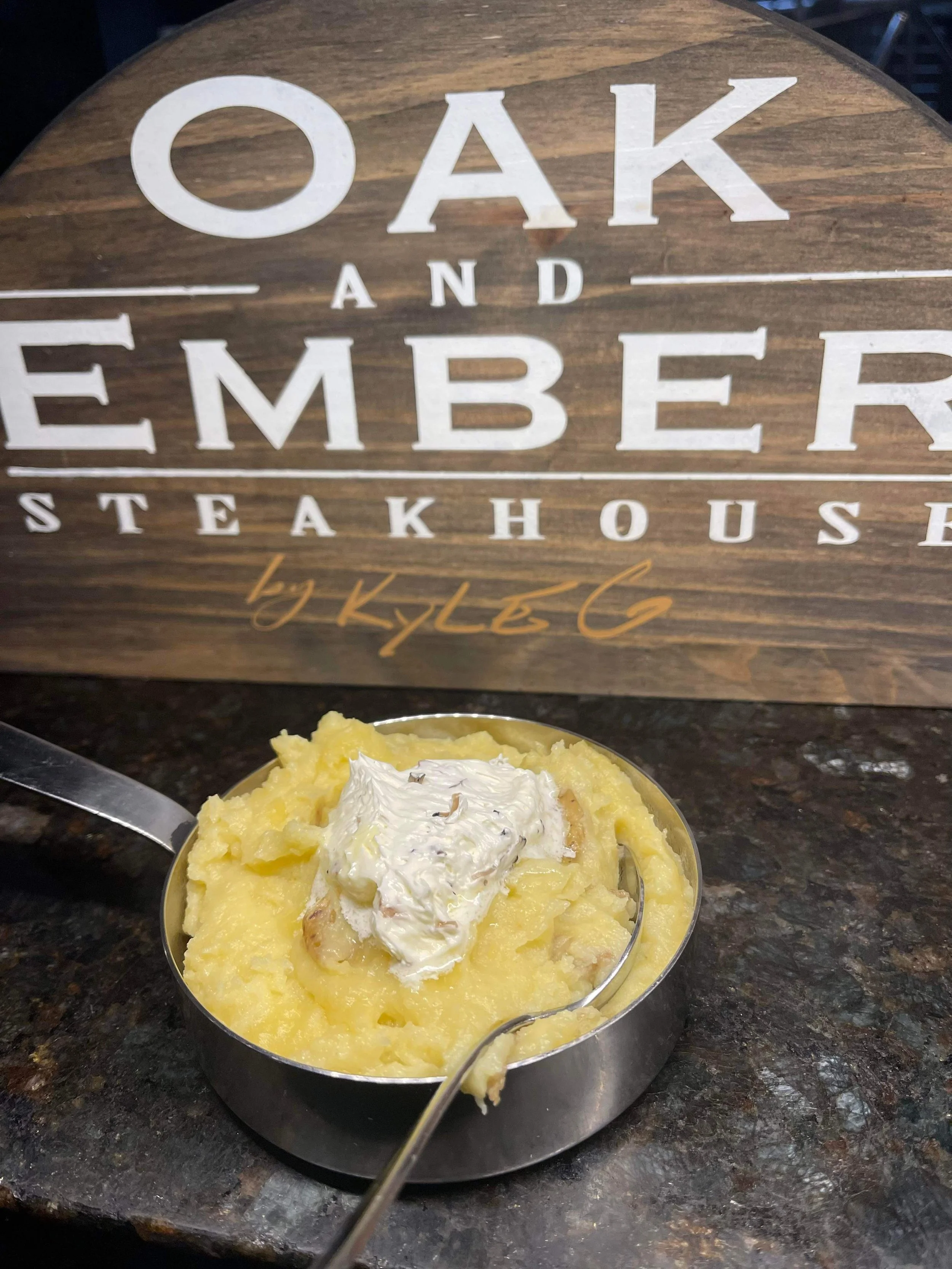 Description: 8 oz buttery yukon whipped potatoes finished with a dollop of truffle butter