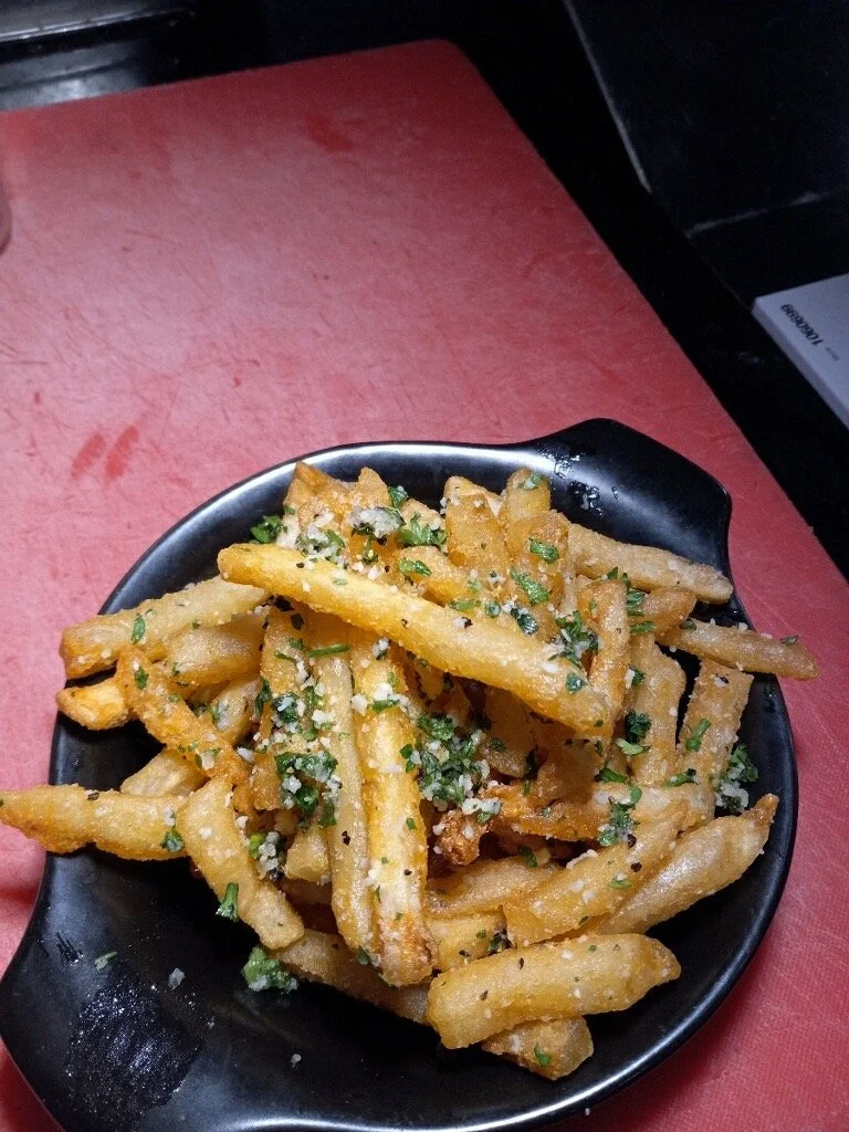 Description: 8 ounces of french fries tossed in truffle oil, parsley, and parmesan cheese