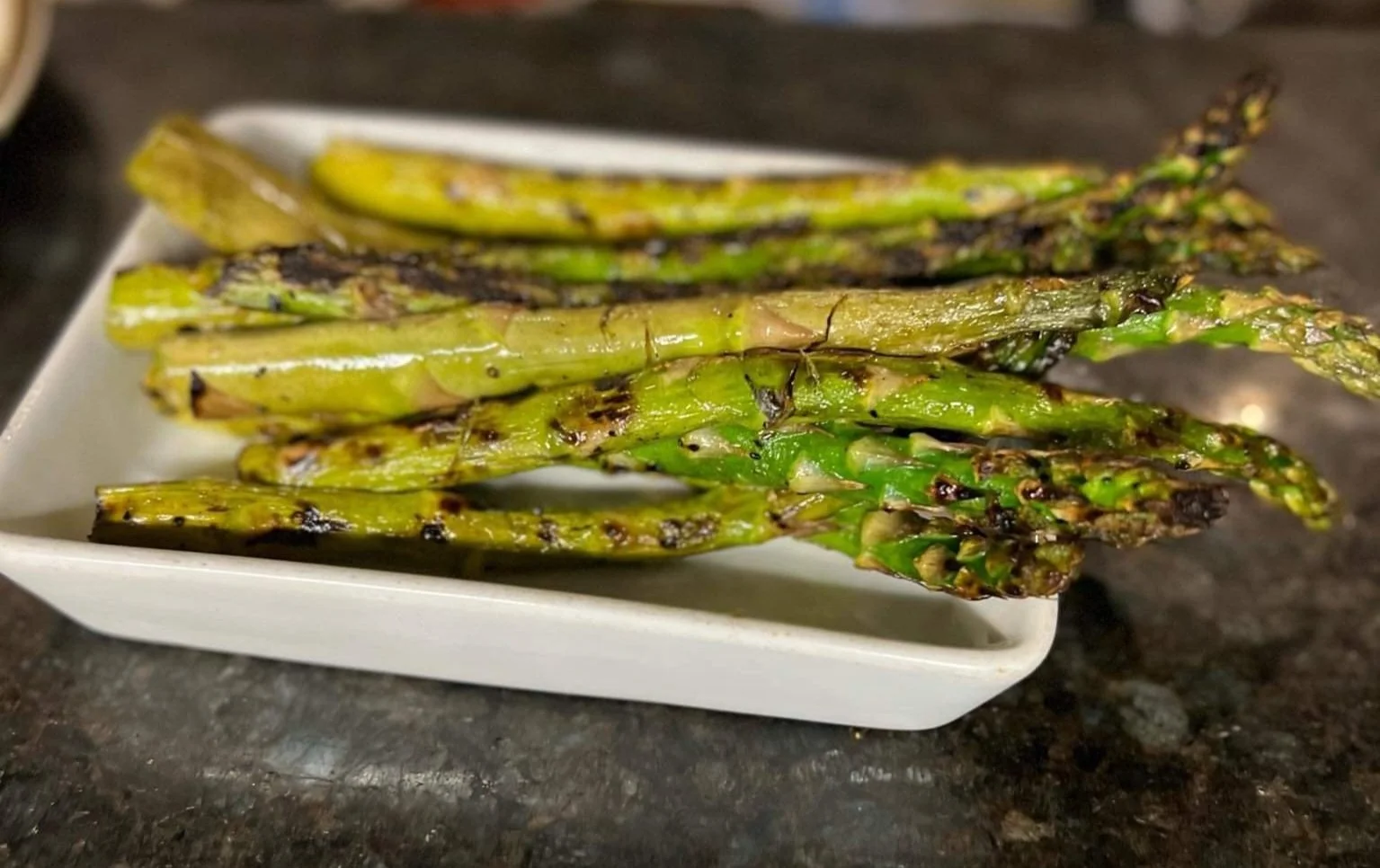 Description: Grilled asparagus brushed with our house dressing finished with lemon zest and sea salt